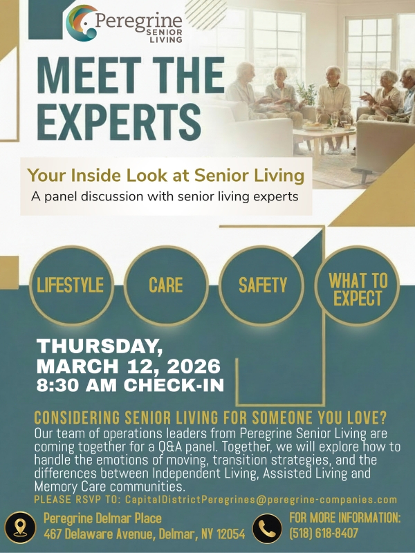The facility is well maintained, very clean, and the operations director and his team couldn’t be more accommodating. The activities are well done and it is obvious that a lot of thought and consideration goes into each activity. The food is great (my husband loves his snacks too) and the menu is diverse. The chef solicits suggestions for menu options and provides a quality product. The staff in the medical department are always there to help. They take great care with all the residents. Peregrine Colonie has a diverse population, which includes a large number of men. The “sports room” has become a hit with my husband and other residents. I am there everyday and can say with absolute certainty that this place is great and my husband and I are very comfortable being part of this community.